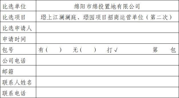上述所有資料須加蓋比選申請(qǐng)人鮮章,到綿陽(yáng)市經(jīng)開(kāi)區(qū)璟上江瀾營(yíng)銷(xiāo)中心3樓314室報(bào)名、購(gòu)買(mǎi)比選文件,文件售價(jià)為人民幣0元,售后不退。