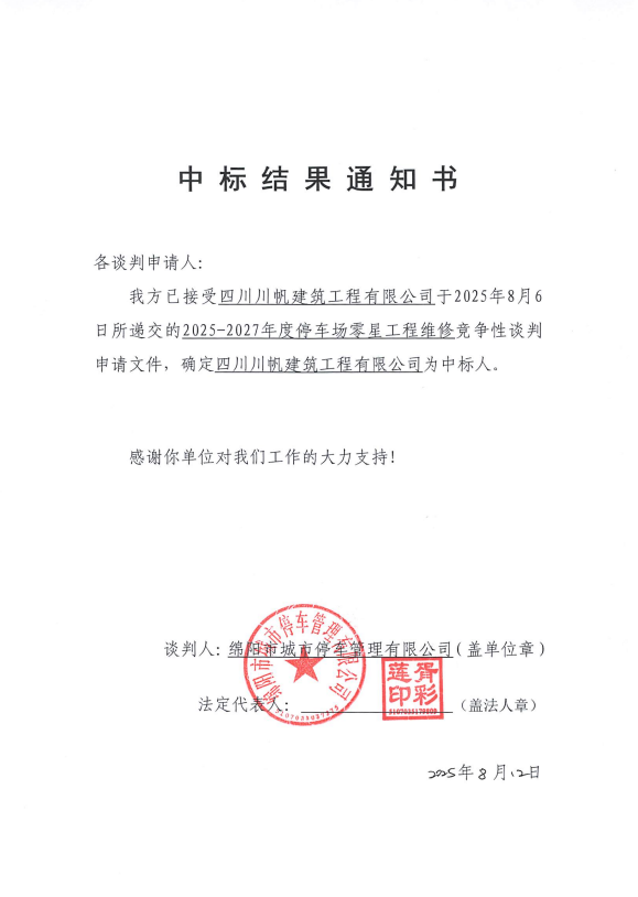 2025-2027年度停車場零星工程維修項目中標結果通知