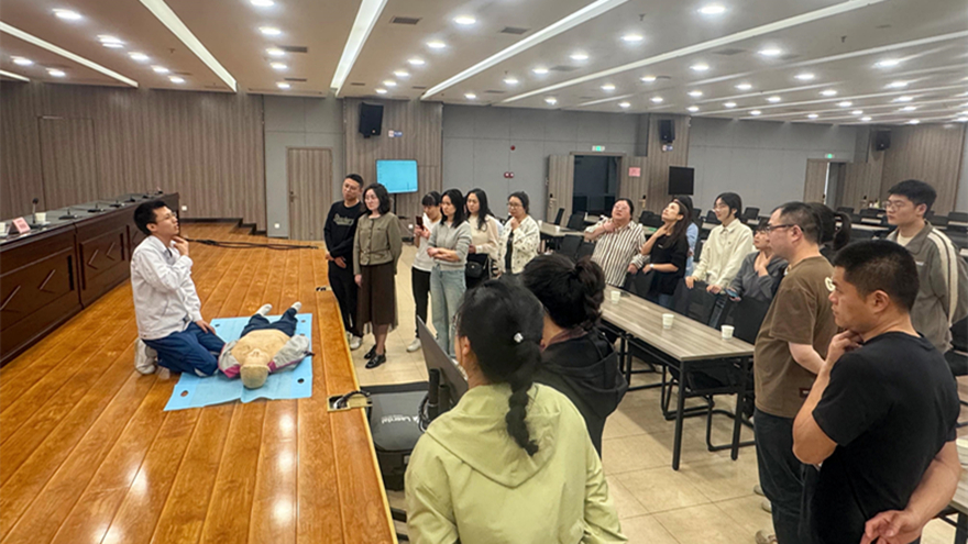 講座中,專家團隊的四位醫(yī)生分別從甲狀腺健康科普、壓力管理與情緒調(diào)節(jié)、日常急救知識普及三個方面展開專業(yè)講解,并通過現(xiàn)場演示幫助員工掌握心肺復蘇、海姆立克急救法等技能。講座現(xiàn)場氣氛熱烈,互動頻繁,干貨滿滿的分享讓參與員工受益匪淺。